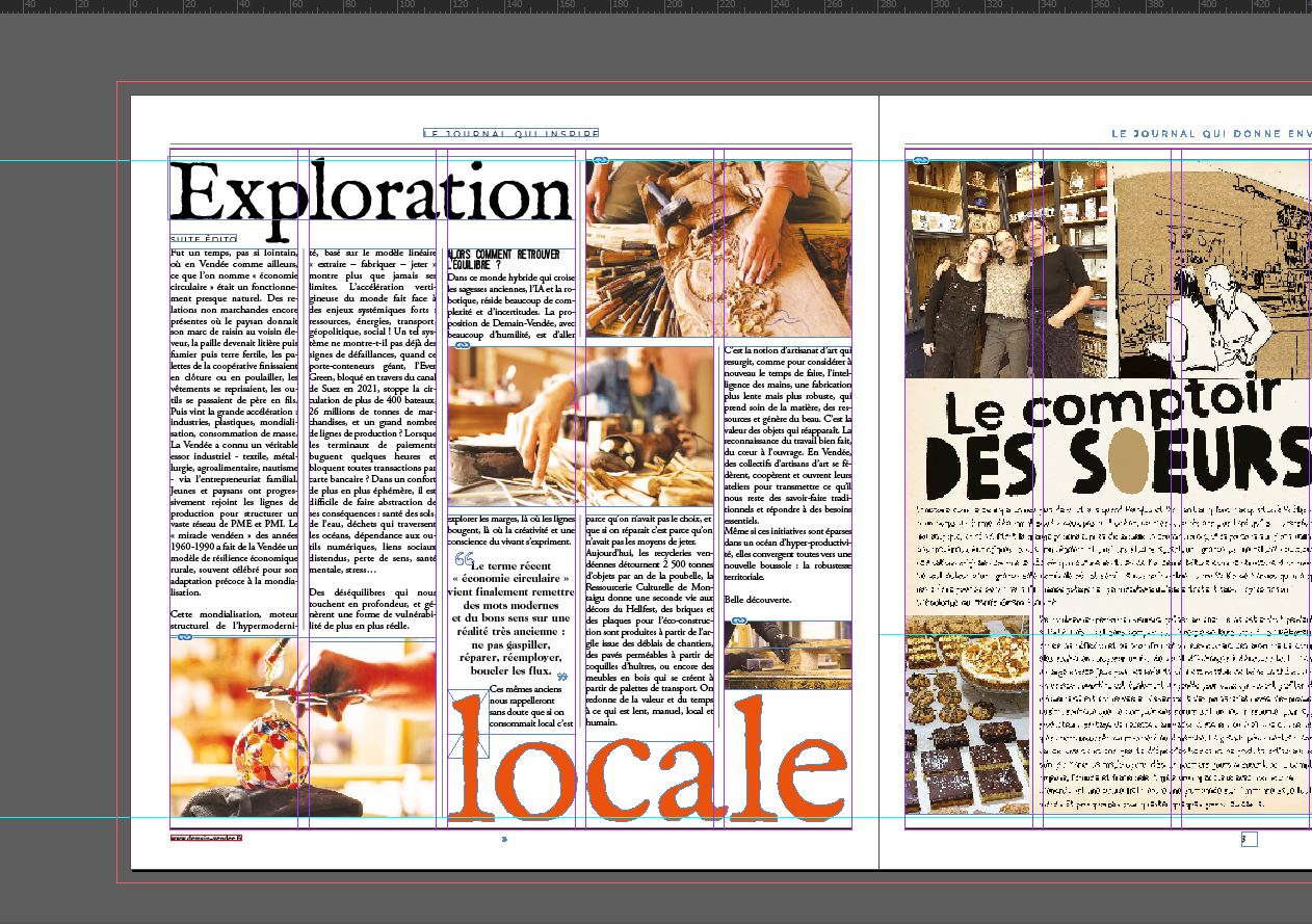 Mise en page trimestrielle du journal et ses hors-série depuis sa création en mars 2019.