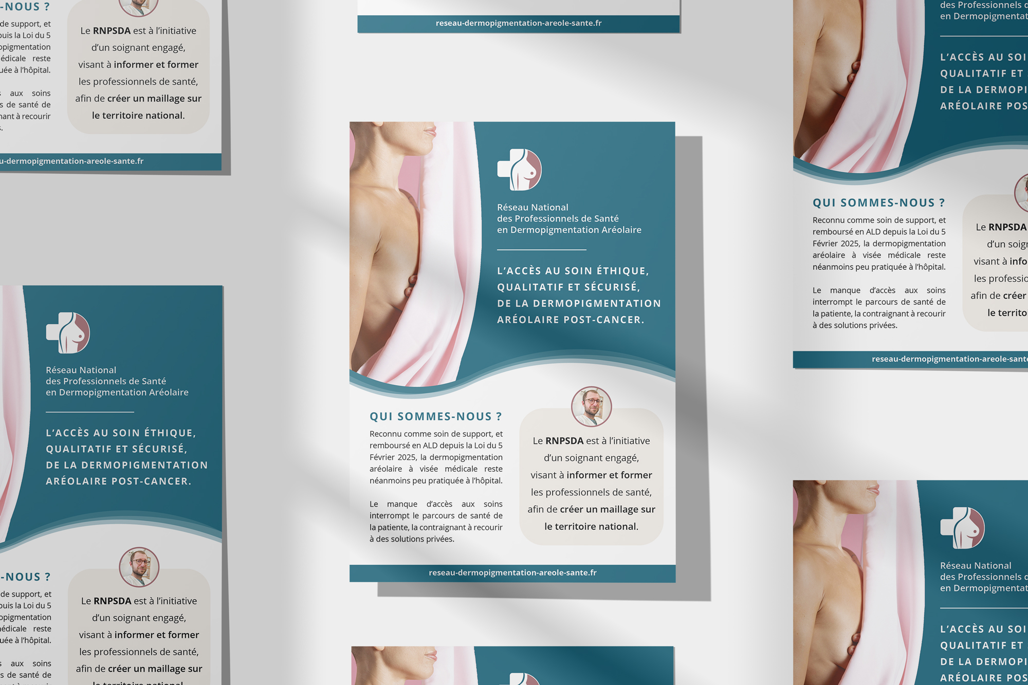 La couleur bleue / turquoise fait écho au domaine médical mais aussi à l’apaisement et à la confiance.