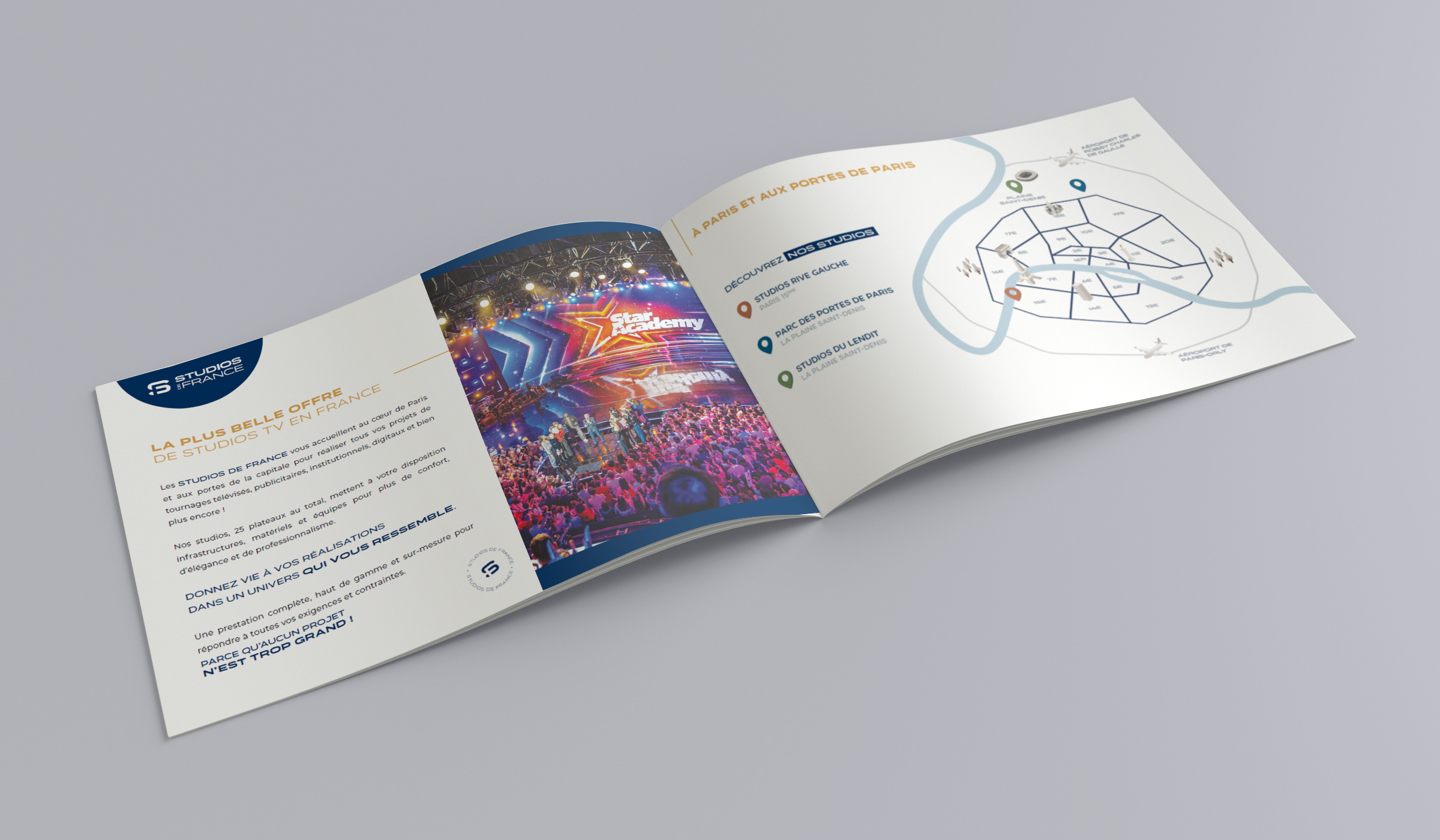 Acteur majeur de l’audiovisuel français, STUDIOS DE FRANCE arbore une nouvelle identité avec son monogramme  » SF  » qui traduit une image forte, sobre et élégante, parfaitement adaptée à un univers audiovisuel haut de gamme.